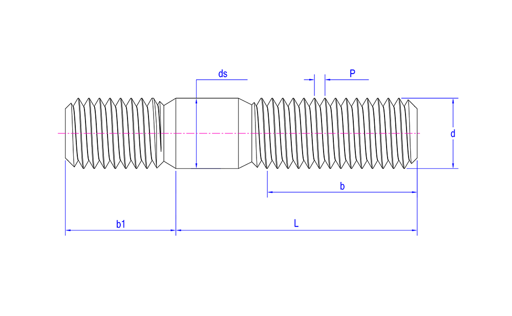 | Mga katangian ng hitsura | Mga cylindrical na bahagi na may mga thread sa magkabilang dulo, karaniwang gawa sa metal, na may isang hindi pa na seksyon sa gitna |