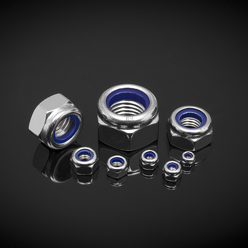| Mga kalamangan at tampok | Panloob na may mga pagsingit na materyal na hindi metal, tulad ng mga singsing ng naylon, upang mapahusay ang friction at lakas ng pag-lock Ginamit para sa mga koneksyon sa pangkabit upang maiwasan ang pag -loosening at panginginig ng boses |