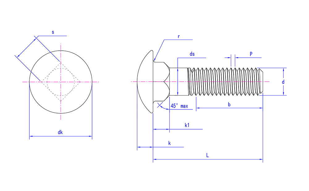 | Mga tampok ng ulo | Semi-circular head square leeg na anti-rotation design |