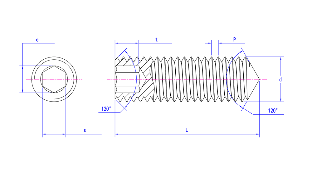 Din914 hindi kinakalawang na asero hexagon socket set screws na may kono point